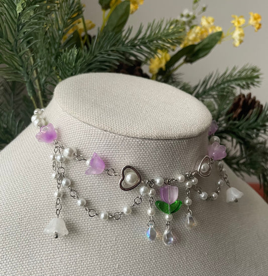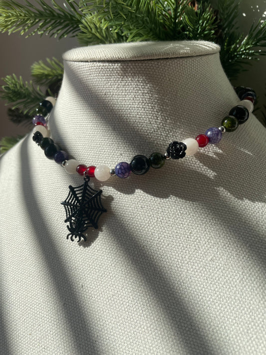 Cat on the Moon Choker w/ Purple Goldstone Pendant